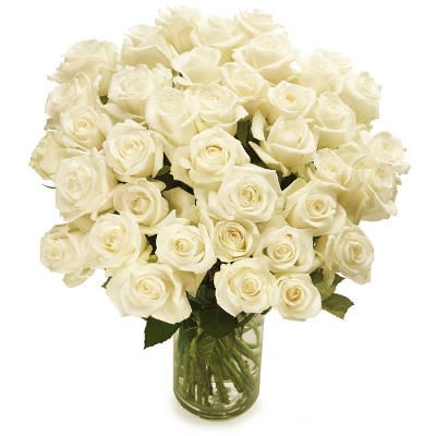 Klassisch, elegant, unschuldig und eindrucksvoll. Dieses prachtvolle weiße Rosenbouquet ist eine traumhafte Überraschung! **Die Vase ist nicht im Preis inbegriffen.** HINWEIS: Es handelt sich bei der Abbildung lediglich um einen Musterstrauß. Es ist keine Stückzahl angegeben.